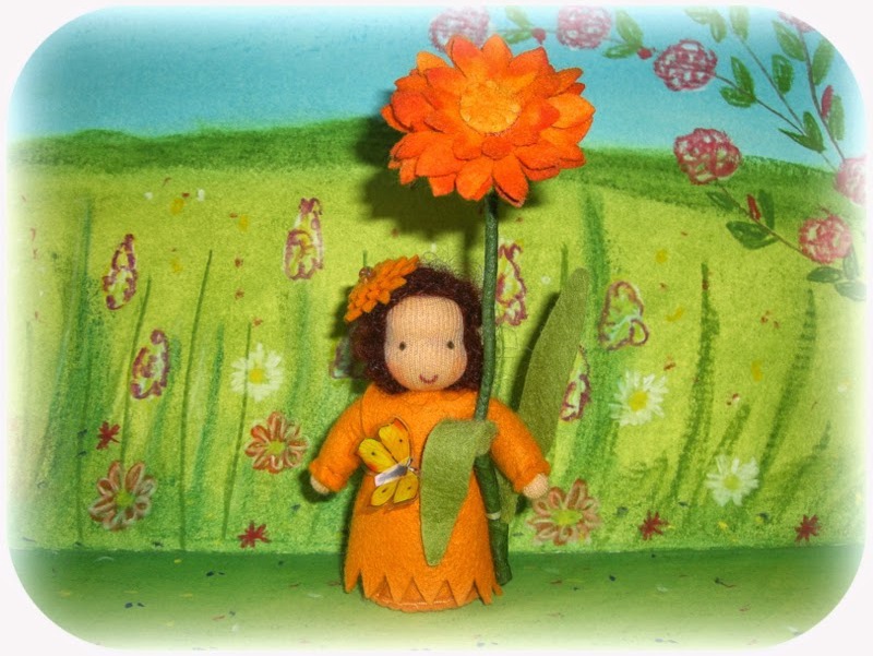 Gerbera mit Beinen, ca. 10 cm, mit der Blume ca. 16 cm, ab 30 Euro